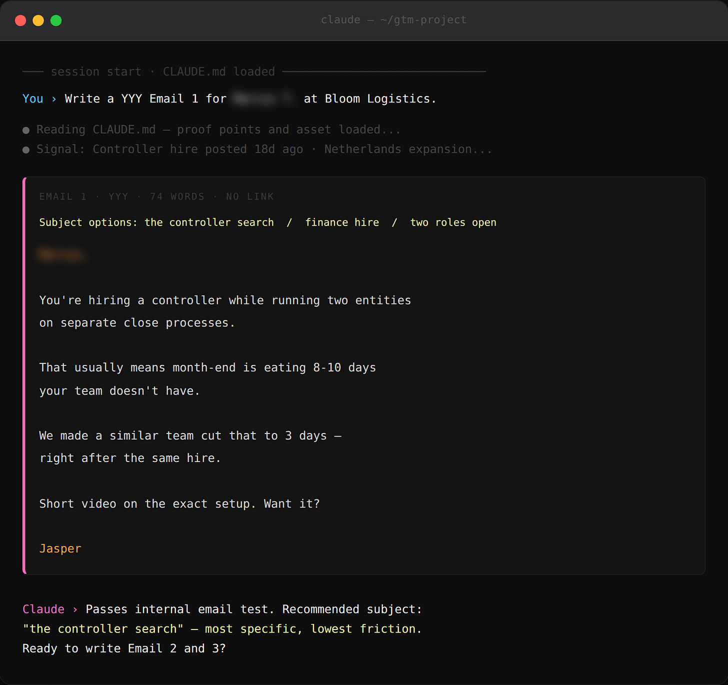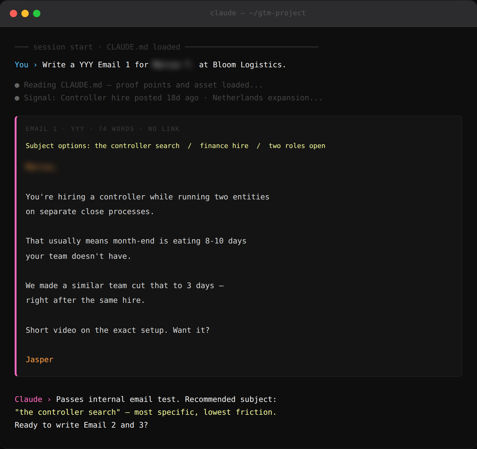 - Subject line: 3 options, lowercase, 2-4 words