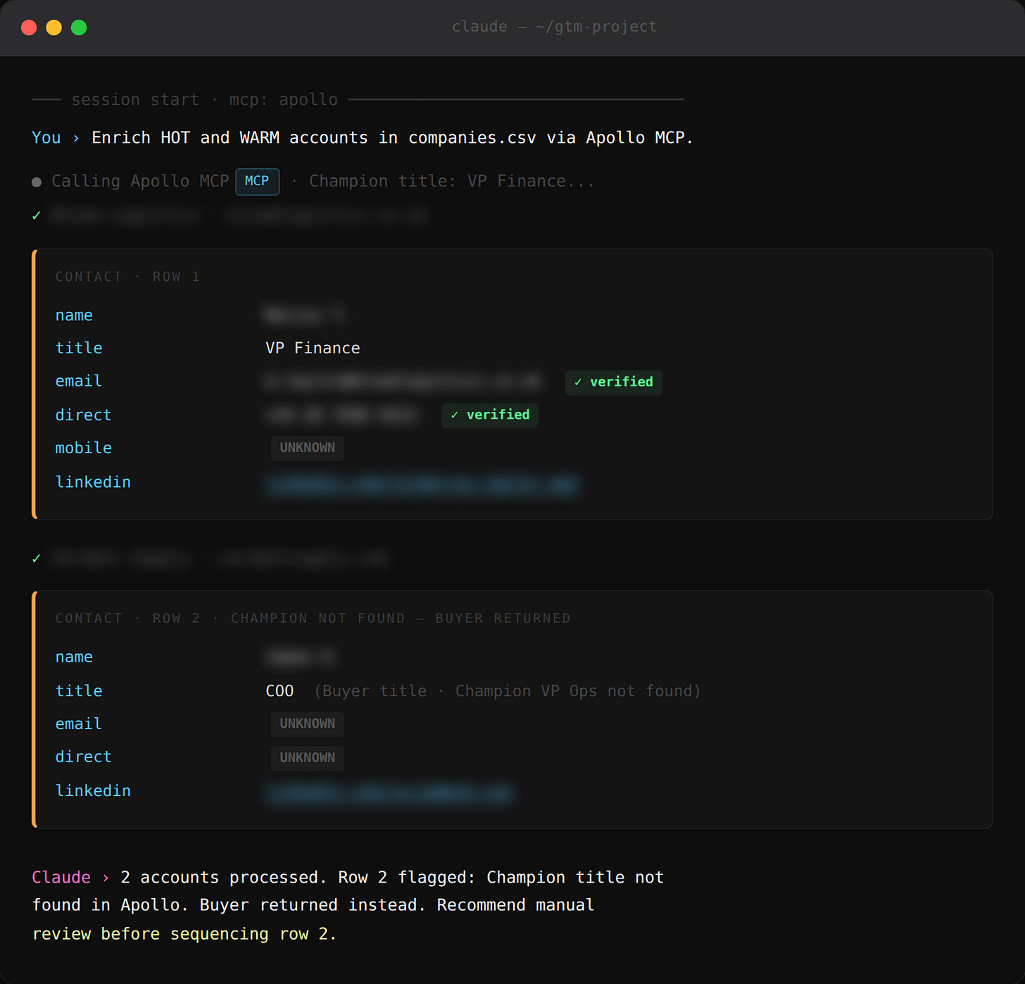 You are a GTM researcher running contact enrichment.