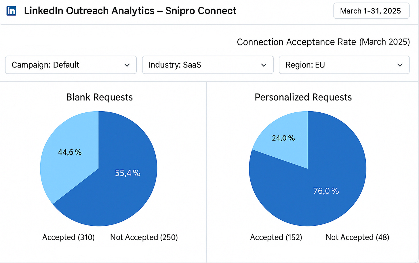 Fake “personalised” notes referencing job titles or shared industries usually underperform.