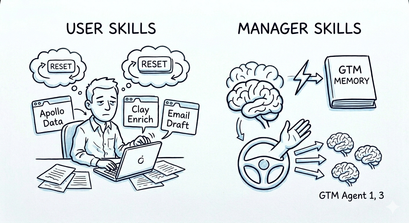 The same split is happening right now with Claude Code. The teams pulling ahead have simply changed their relationship with the tool. They stopped being Users, clicking between tabs, re-explaining their business every session. They became Managers.